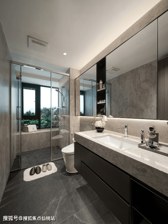 卫浴同样选用汉斯格雅的台盆、水龙头、花洒,以及松下智能马桶等,用全球一线大品牌的手笔,为理想人居锦上添花。