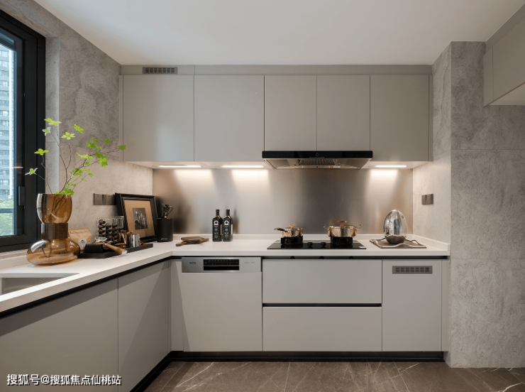 比如,全屋无主灯设计,通过不同光源的组合创造更舒适、温馨的氛围;厨房推拉门安装双层钢化长虹玻璃,比起普通玻璃门,朦胧美感有效阻隔凌乱视野......