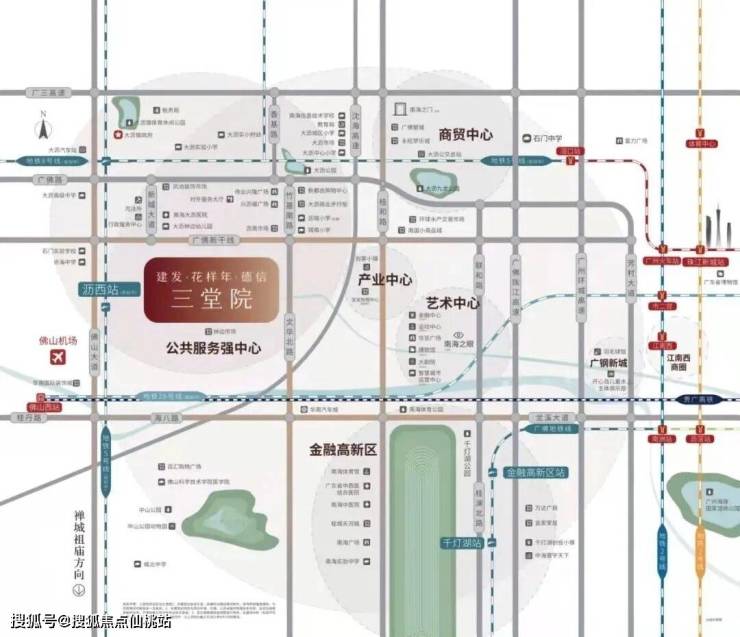 建发花样年德信三堂院位于南海区大沥镇广佛新干线南侧、佛山大道东侧、文化北路西侧,傲立佛山“灯湖中轴”上,坐享城芯成熟配套,同时,千灯湖中轴“北延过河”速度有目共睹,不断推动金融服务业与商贸业充分跨界融合,延绵约12.8公 里的千灯湖中轴,已经吸引了700多家金融机构及世界500强榜单企业,拥有佛山最 优质的资源配套,千灯湖中轴,无疑是佛山楼市下一个“爆发点