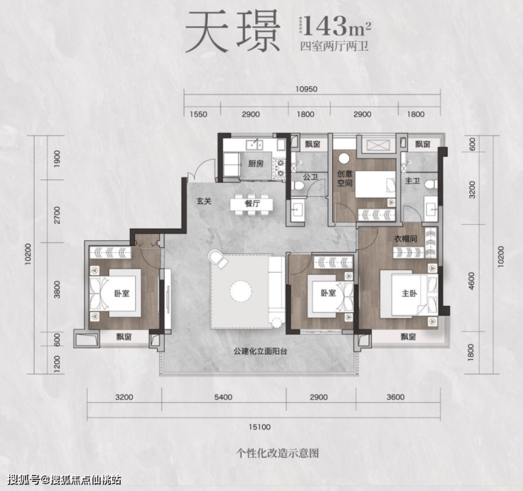 【主卧套房】酒店式主卧套房设计,270°拐角飘窗,专属尊崇