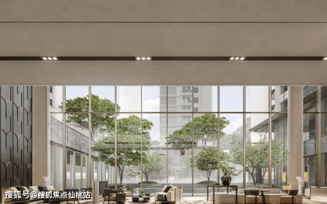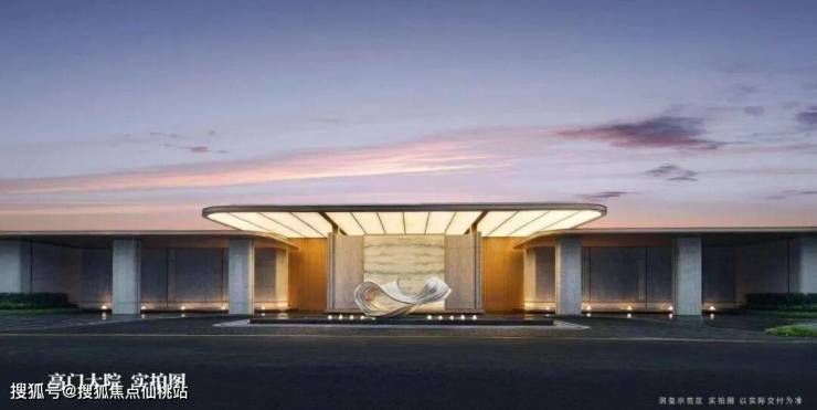 项目打造融合星级酒店形制的归家礼序,包括高门大院-名贵迎客松-悬瀑超级画面-近500㎡水韵空间。