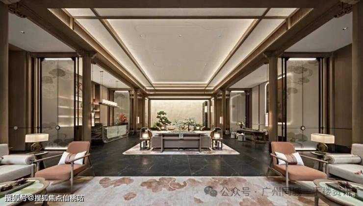 项目打造约6.8万㎡中式园林。“礼道-见松-步水-游廊-归堂”每一平米,都是对品质生活的雕琢