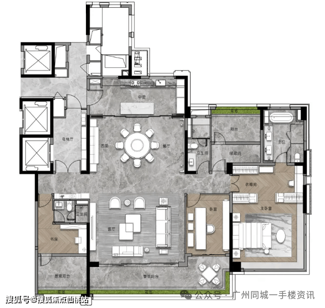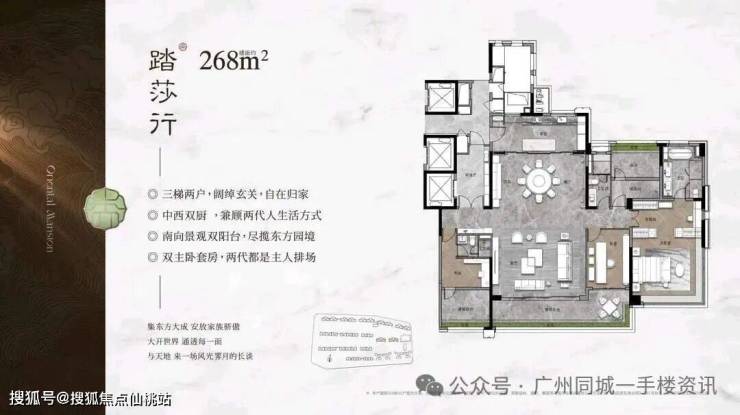 我们再来看看此次加推的268平的大面积户型,作为项目的旗舰,暗藏着哪些巧妙的设计?