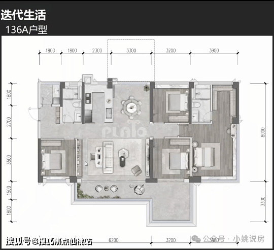 有约 2400㎡“壹号生活馆”,含健身房、瑜伽室等,还有双泳池、9 大架空层泛会所等。