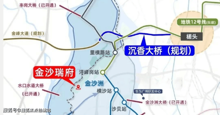 金沙洲大桥、大坦沙大桥、沉香大桥(规划)、同心桥(在建)、水道口大桥、黄岐大桥、丰岗大桥、碧江大桥(规划中)全面环绕。据了解,沉香大桥预计明年开工建设,未来通车后,从金沙北部到白云新城仅5公里,畅达交通环境,为生活加速。