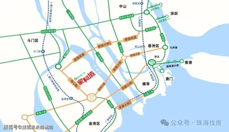 香海大桥、洪鹤大桥、金海大桥、鹤洲新区-高铁枢纽中心站、珠海机场等在侧,无缝衔接湾区生活