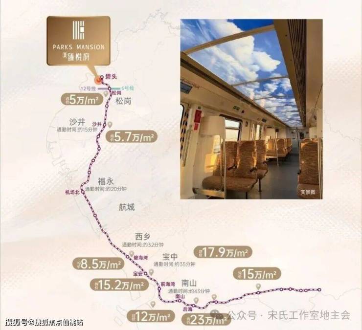 紧邻地铁11号线碧头站(终点站),步行约400米。11号线是快线,46分钟直达后海,30多分钟到宝中,50多分钟到福田CBD。碧头站一站到松岗站,可换乘6号线和在建的12号线延长线。自驾方面,紧邻松福大道,接驳外环高速,30分钟可达南山科技园。