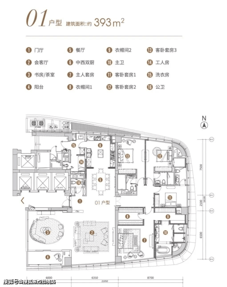 【T7-01户型鉴赏】约393㎡四房三厅六卫