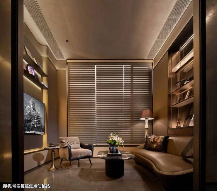 雪茄区一盏落地铜灯,形若宋代玉壶春瓶,光影流转间,暗合“无有之间,随物赋形”的禅意。烟雾缭绕中,铜灯的光影在墙面投下斑驳的痕迹,仿佛时光在此停滞。茶几上的卷轴纹样在灯光下若隐若现,仿佛将参与者带入千年前的山水画卷中。
