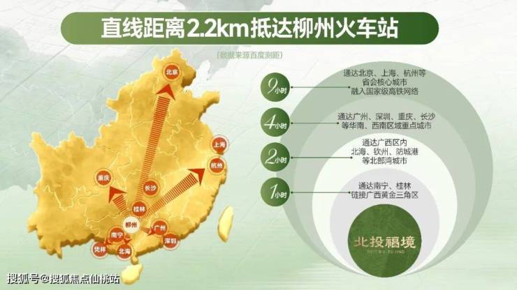 北投福境交通便利,柳邕路、城站路、航银路、银铜路、银铜山隧道等交通设施串联老城核芯,直线距离柳州市中心五星商圈不到3公里(数据来源百度地图,下同),直线距离柳州火车站仅有2.2公里。