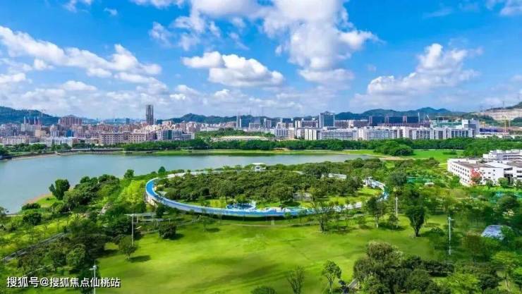 片区更新单元东依茅洲河生态绿廊,南邻明湖公园、湿地公园、地铁上盖公园3大公园,是一个被河道+公园半包围的项目。