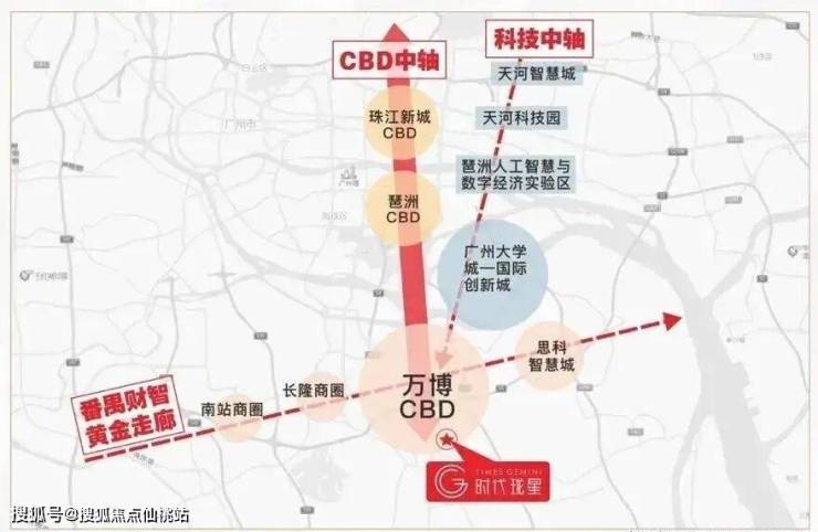 时代珑星位于广州番禺区万博CBD旁,紧挨着核心区!万博CBD在区位上位于番禺华南板块核心地段,北承珠江新城、琶洲会展中心、南接南沙自贸区,西连广州南站,占踞广州CBD中轴,广深港澳科技走廊与广深港高铁经济带双廊交汇的黄金C位,又属广州南拓轴与珠三角东西岸融合带核心,未来CBD价值不言而喻,万博板块的时代珑星,距离万博3公里多。