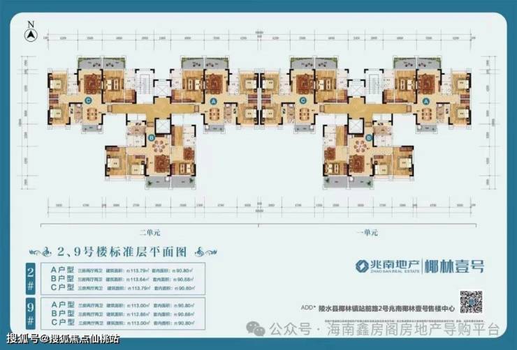 2栋和9栋是13层,共两个单元,每个单元2梯3户,每层共6户。