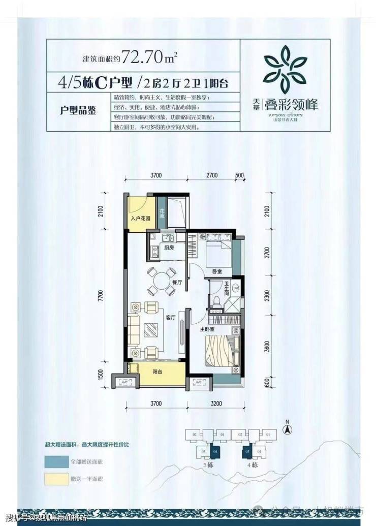 7米景观阳台连接客厅与次卧,主卧套房设计私密性强,拓展空间可改造为书房或儿童活动区,实用率高达85%。 总价约50-66万,月供仅需2300元,兼顾刚需预算与改善需求。