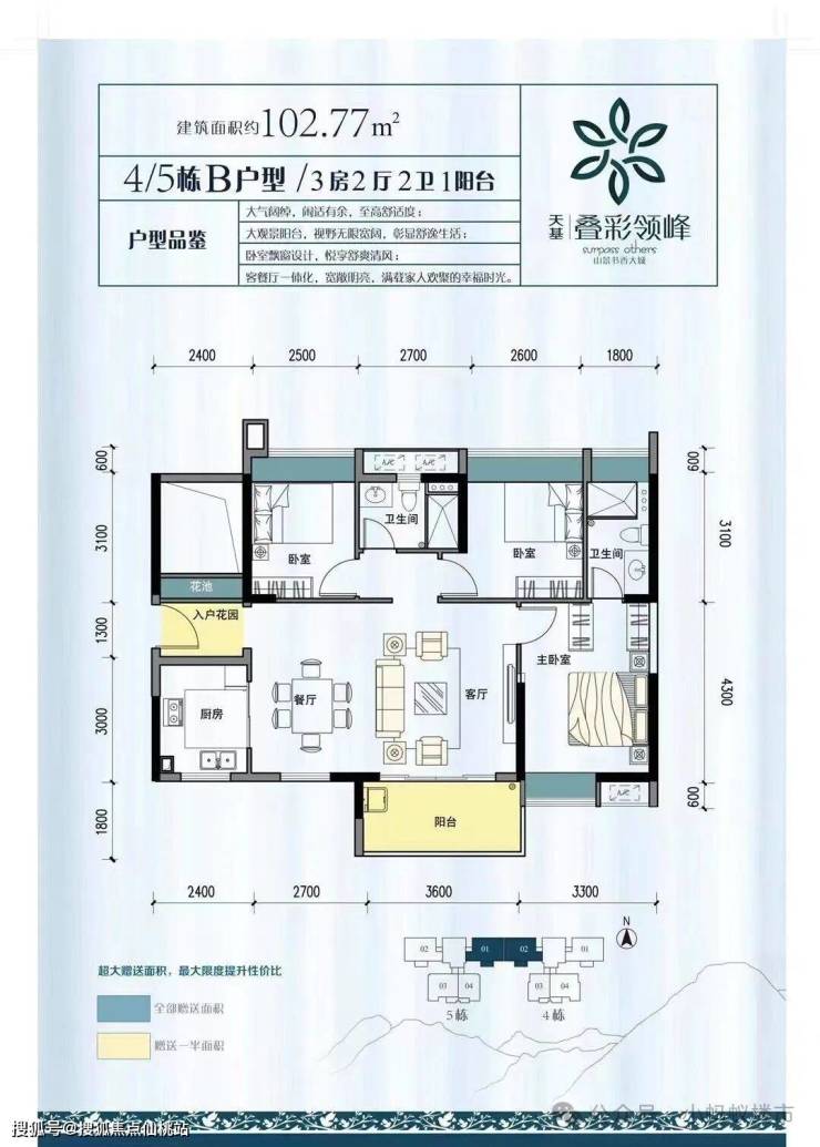 2. 95-102㎡3+1房:三代同堂的性价比之选
