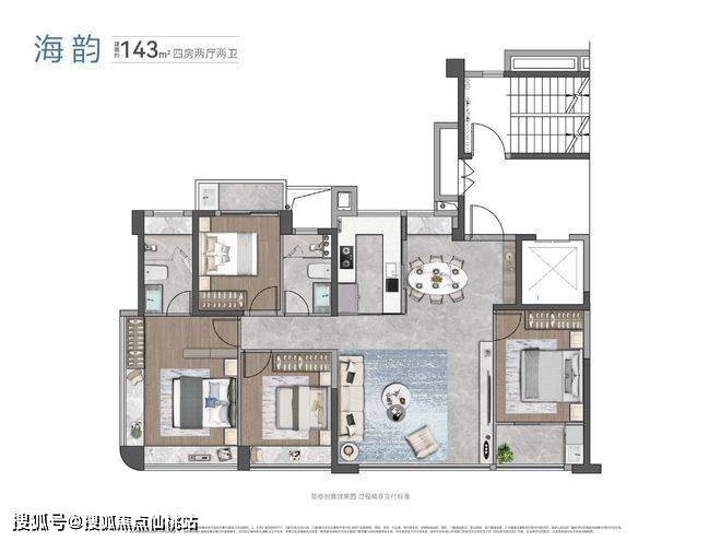 遵循现代典雅的对称式美学,大线条建筑构型,两梯两户奢宅规制,纯粹板式设计,造就超大窗墙比,南向超20m极致瞰景(建面约190户型产品),映照湾芯峯景入窗。