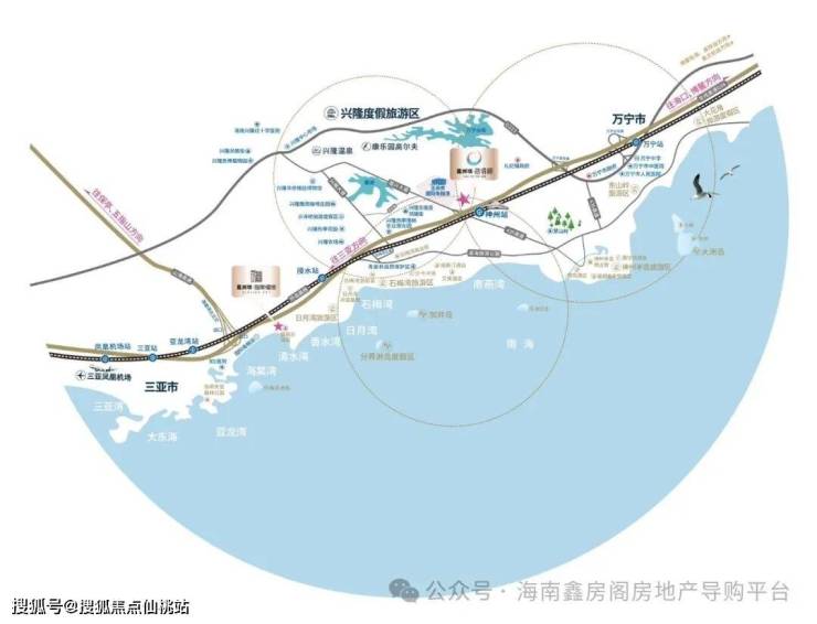 项目位于万宁兴隆温泉旅游度假区、滨海湾区、万宁市区三区交汇处,拥有着与生俱来的优势位置,紧邻交通枢纽,享环岛高速、环岛高铁、三大机场,立体交通网络畅达全岛。