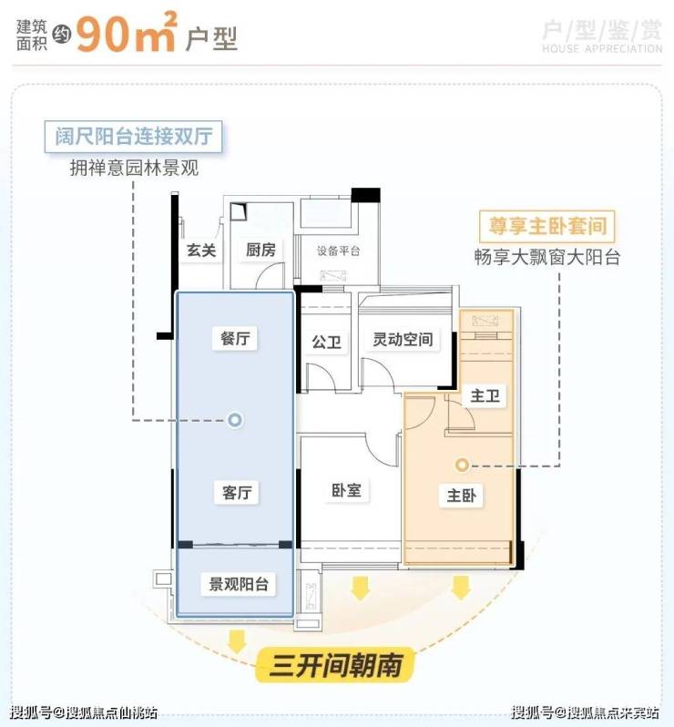 南向大面宽双厅,清风与阳光时常光顾,双卫设计轻松满足一家人的从容起居,让生活安稳有序。