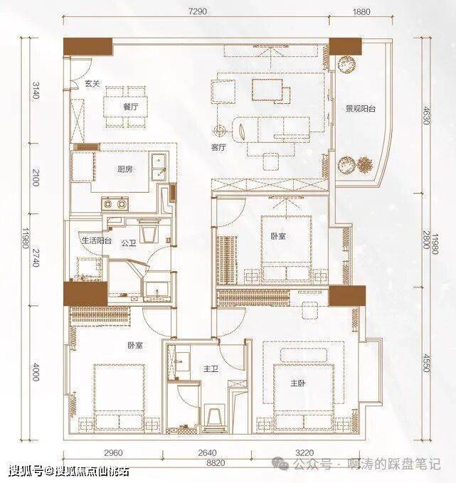 建面约93㎡园景户型,看中庭中央园林,阳台约180米宽楼距阔景园林