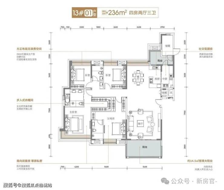 🔸01户型:236㎡ 四房三卫双套间