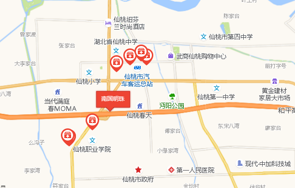南国明珠位于城南新区沔街大道一号与锦瑞路交汇处,处在城市南北中轴线上,可以方便顺畅地到达仙桃市任何地方。1路、7路、22路公交车可以到达路等数条公交线路停靠,东西南北全区域覆盖,真正实现了离尘不离城。城市主干道构建城市立体交通网,多维的立体交通模式,可高效通达全城。