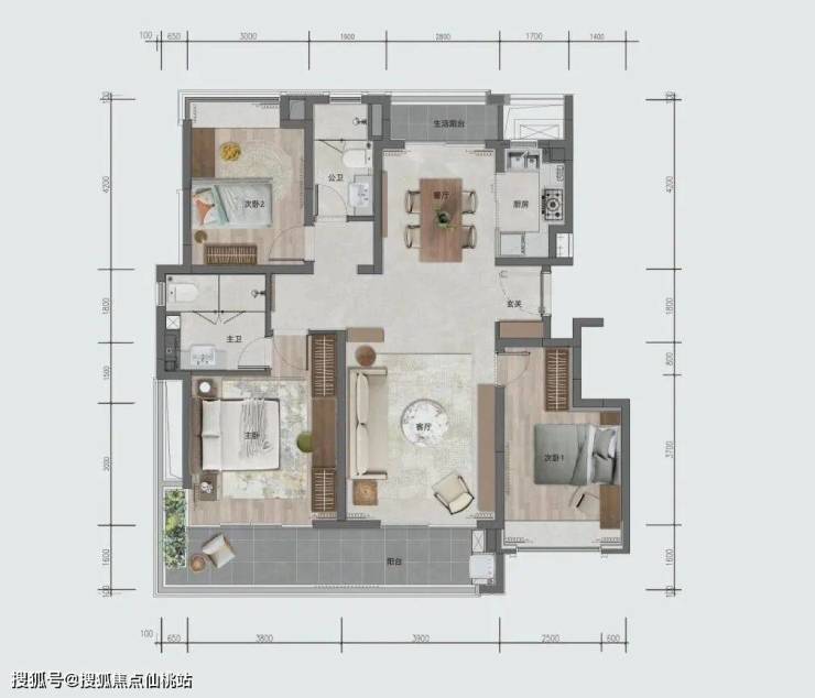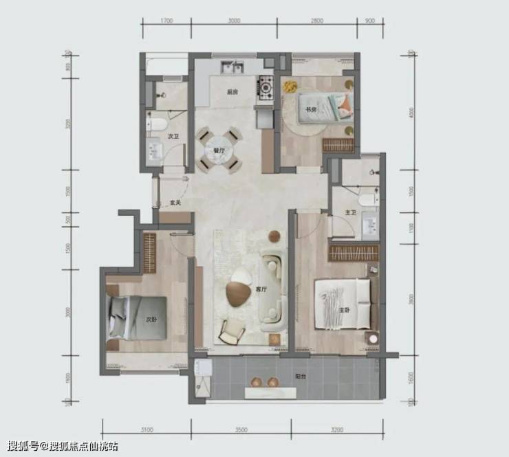 160㎡上叠,做到了动静分离,三层布局三个卧室,主卧套房同样配备独立衣帽间+双台盆主卫,另外两个卧室都带飘窗;四层做成约40㎡一体化横厅,带约30㎡270°环幕露台,视野开阔,尽显阔绰尺度。