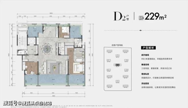 建筑面积约:111-229平方米湾芯环幕大平层