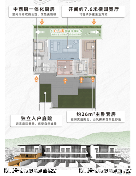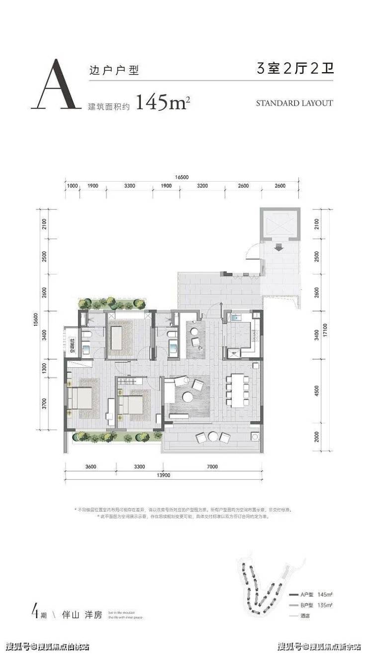 此次山之屿推出的 A/B区叠院新品,为建面约172㎡—180㎡的B户型 。