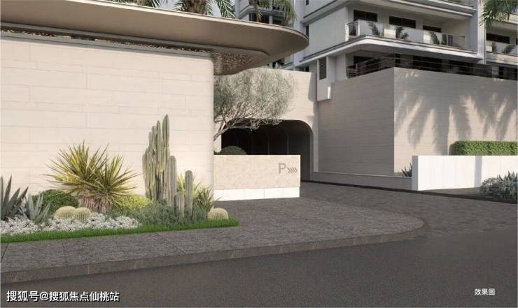 •一进:酒店式归家 | 近 70 米长弧形落客门廊,围合仪式感入口前院