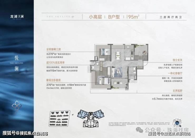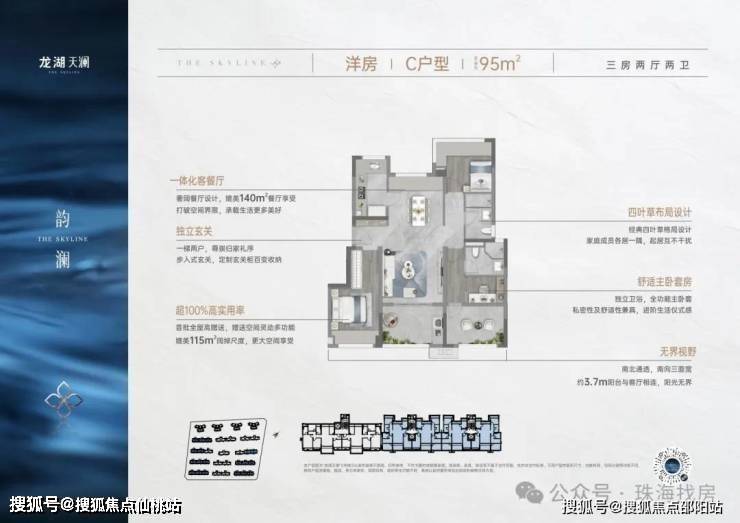 龙湖天澜,作为湖心新城首个新规后洋房社区,打造建面约85-144㎡奢境会所洋房,实用率超100%,刷新珠海户型标杆。