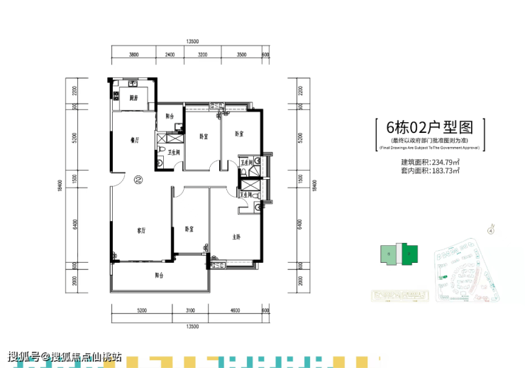 在售的6栋,两梯两户,建面约219-235㎡四房大平层户型。