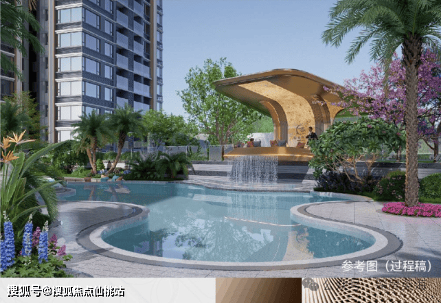 项目共分为叠映轩、春语轩两个地块开发,两个地块中间有空中连廊相连互通,园林内部规划有泳池水景,采用大部分玻璃立面。