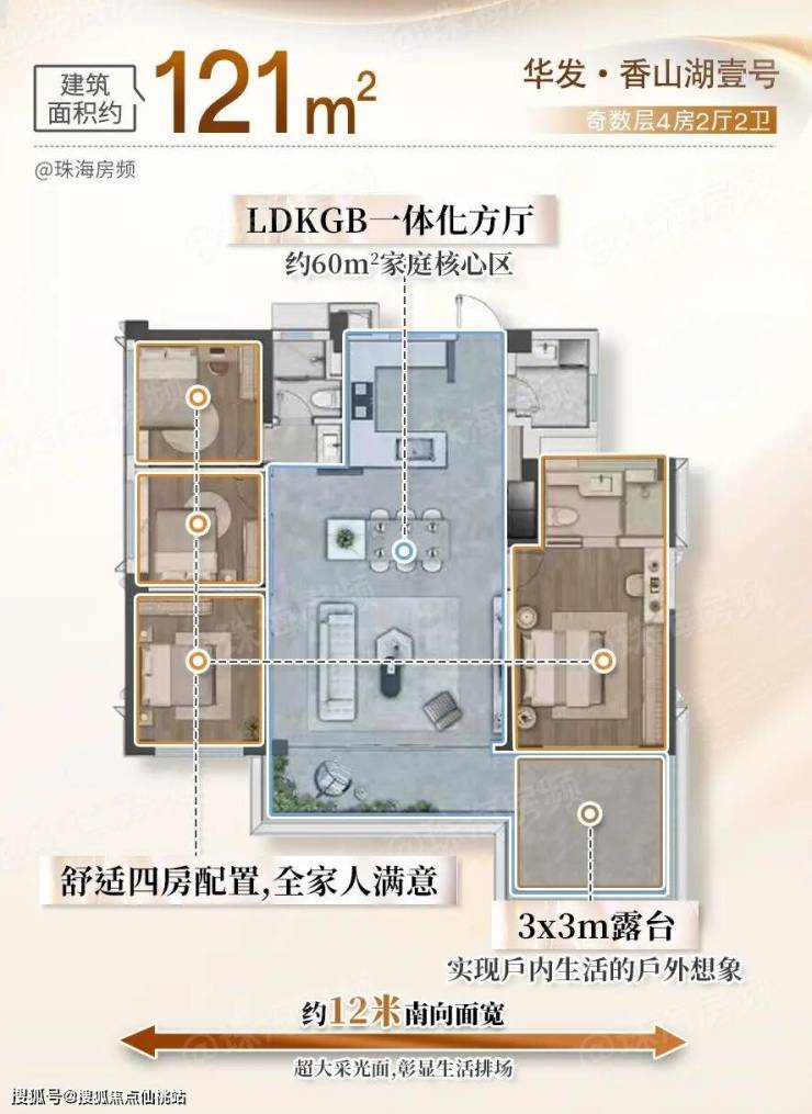 ·约121㎡户型:4房配置,主卧享私属露台