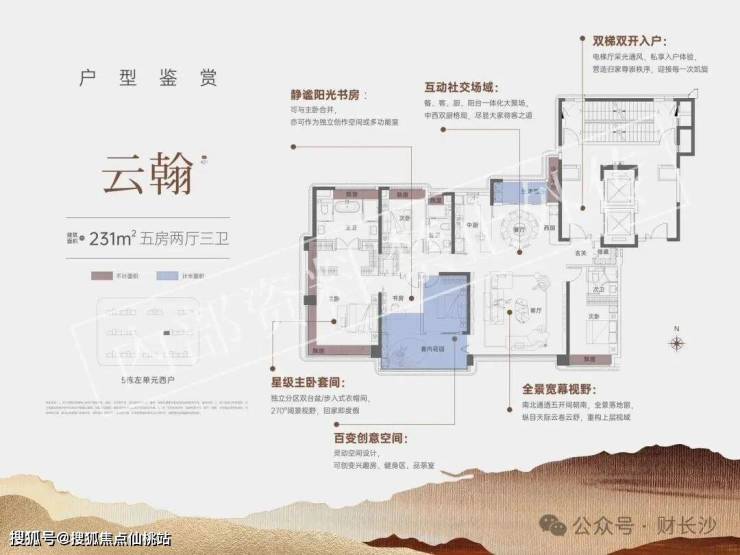 建筑面积约231㎡五房两厅三卫,让空间的东方意境,融贯生活的艺术之美。