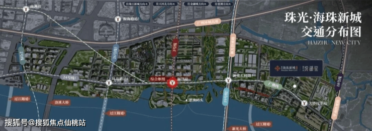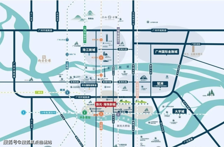 珠光海珠新城位于广州市海珠区南洲街道南洲路与大沙新村东街交叉口东200米处,广州地铁3号线与广佛线交汇的沥滘站附近;属珠江后航道北岸地区,占据广州中轴南端最后1公里,与珠江新城CBD、广州塔共同承载着广州12公里城市中心界面的重磅规划,广州中轴之上最后的塔尖置业珍稀之地。