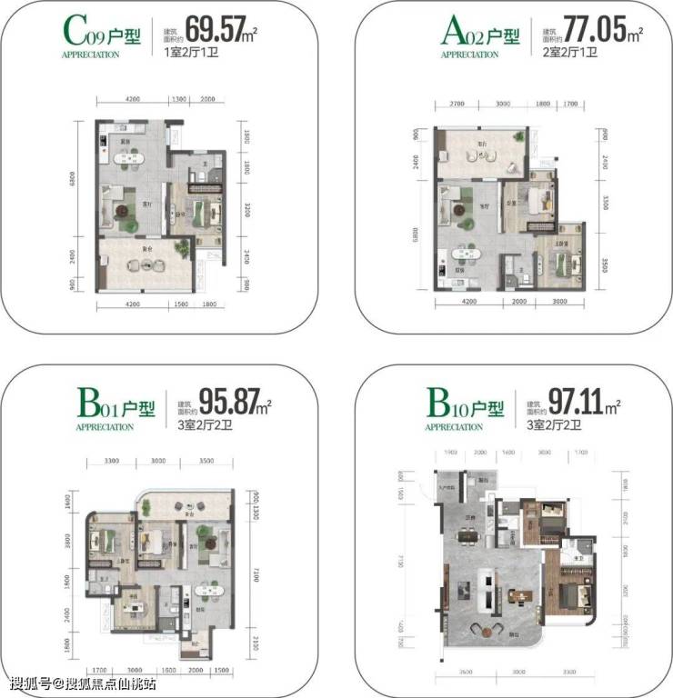 建面约69-104㎡一至三房,灵动空间