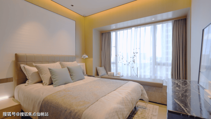三开间朝南,主卧、次卧均有大面积瞰景飘窗,在扩大采光面的同时,更是欣赏园林景观的“头排雅座”。