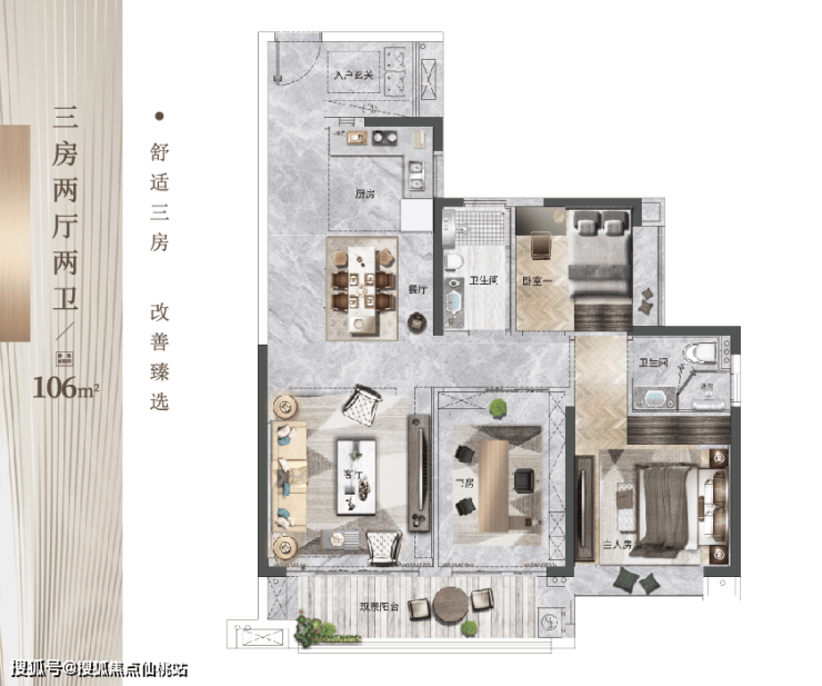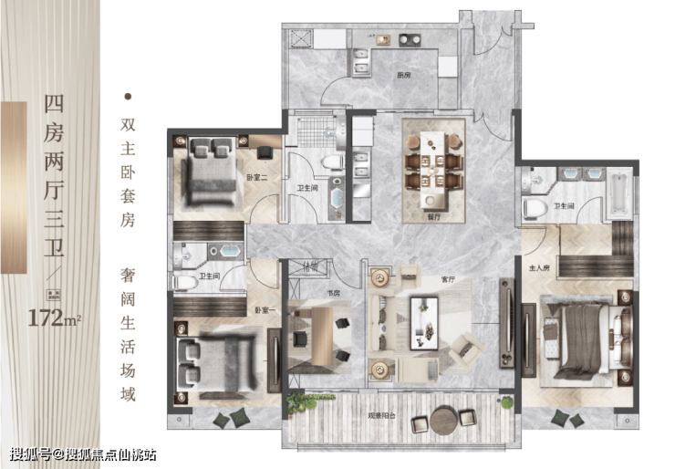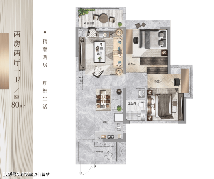 80-172㎡二至四房瞰景高层,总建面34万㎡,2.6低容积率;全户型南北朝向,格局方正实用,动静分区,且均带独立入户花园,是此区域内仅有的舒适型生活置业产品。