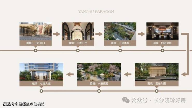 打造七进归家仪制——整个小区从繁华到静谧,七重空间层层递进;百米迎宾界面沉淀喧嚣,挑空门厅舒展心境,一路抵达栖居之所,张弛有度出入随心,定制归家之旅。
