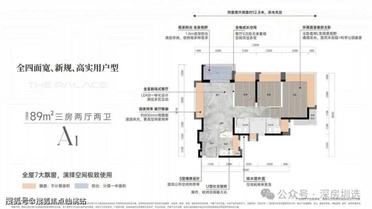 【A1 启创 】「建面约 89m²三房两厅两卫」