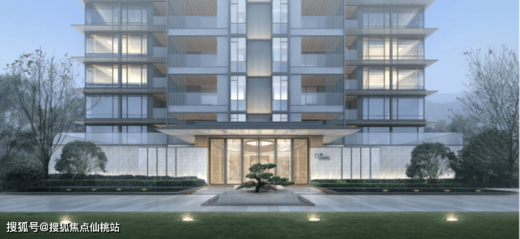 极致东方建筑美学外立面融合东方建筑美学元素中出挑屋檐、木格栅、竖向线条等设计手法,结合通透的玻璃幕墙,并采用双层LOW-E 中空玻璃,整体成本高于真石漆涂料约15倍,且高透光、低反射,有效避免光污染。