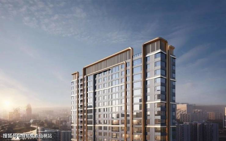 公建化外立面,统一封窗交付,晶彩石+大面积玻璃+大框铝板线条,打造视觉冲击力。