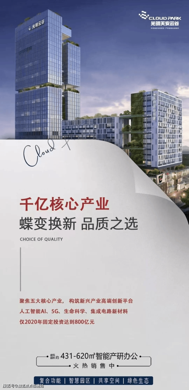 光明天安云谷作为科学城综合配套区与产学城融合创新区,傲踞广深港澳科技创新走廊北门户重要节点,承载科教成果转化、科研试验、学术交流等重要功能,同时,为企业发展提供人才、资金、技术等要素支撑和高品质居住/教育/医疗/商业等服务,打造"IT(信息科技)+BT(生物科技)+MT(制造科技)"特色主题产业生态,构建光明科学城创新生态活力中心和集约高效的国际智慧产学城社区。