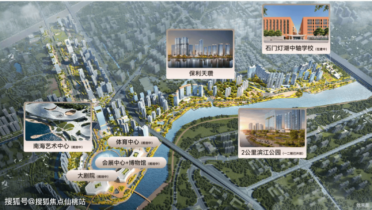 保利天瓒占位佛山黄金s湾—灯湖中轴核心,以广州珠江新城为远景,打造广佛同城核心,作为千亿配套聚集地,是城市的绝对中心。