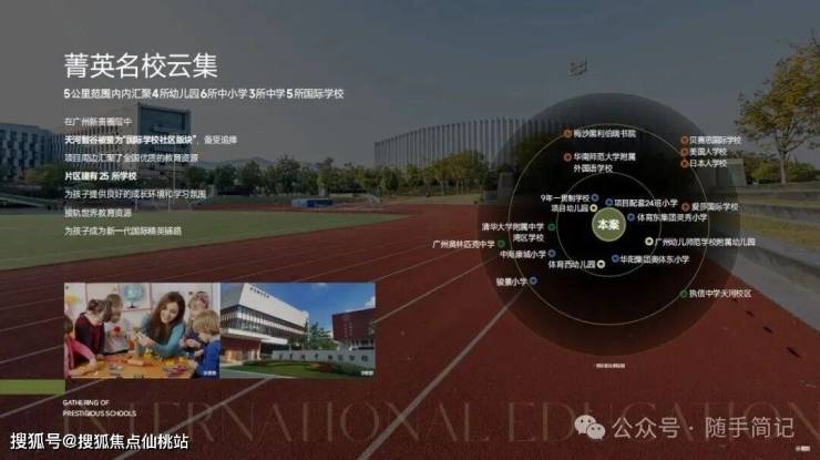 幼儿园:体育西幼儿园、2所广幼附属幼儿园小学:华阳奥体东小学、体育东集团灵秀小学中学:执信中学、清华附中等国际学校:贝赛思、爱莎国际、梅沙黑利伯瑞
