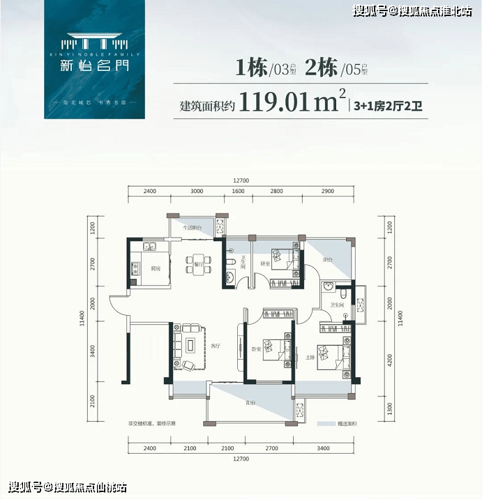 建面约119平户型,改善首选。