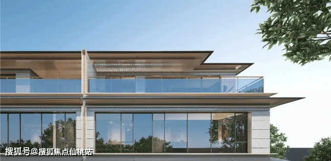 南居:大面积干挂石材与玻璃铝板结合的立面,“重檐”元素的东方气质,“线框造型” 强化别墅横向线条的大气磅礴之势,革新长沙别墅高阶审美。