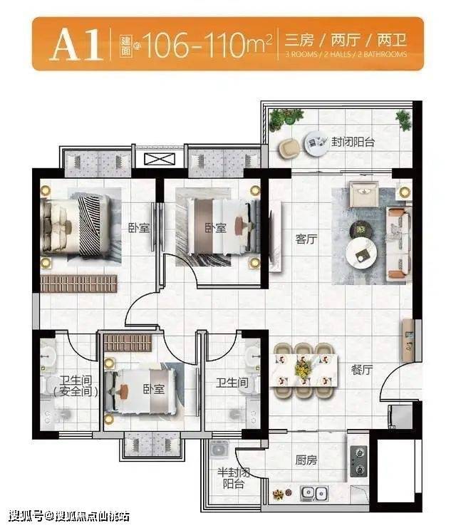 建面约73㎡~110㎡全龄美宅,纳藏三代同堂的生活理想