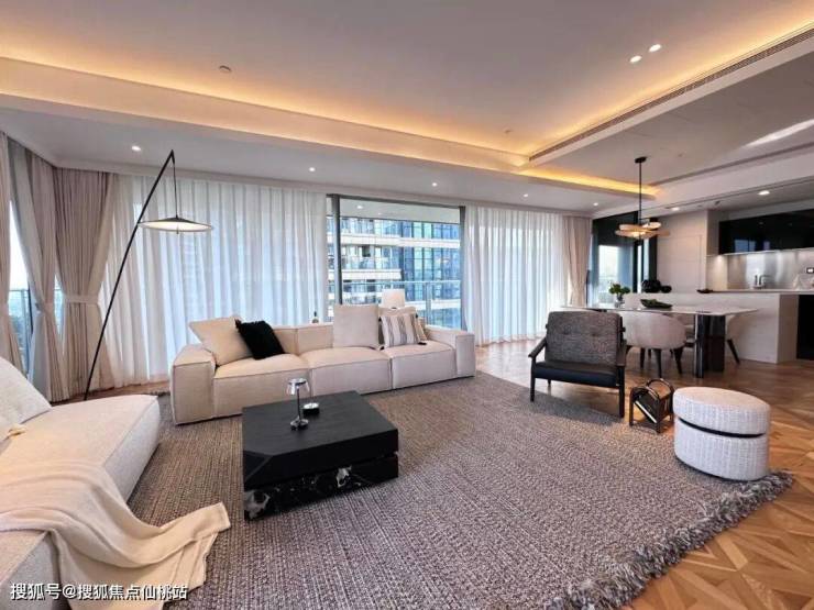 室内采用大平层无柱设计,空间开阔无浪费,南北通透、采光视野俱佳,甄选国际一线奢装品牌,厨电卫浴、软装陈设均为顶奢配置,工艺考究,质感拉满。