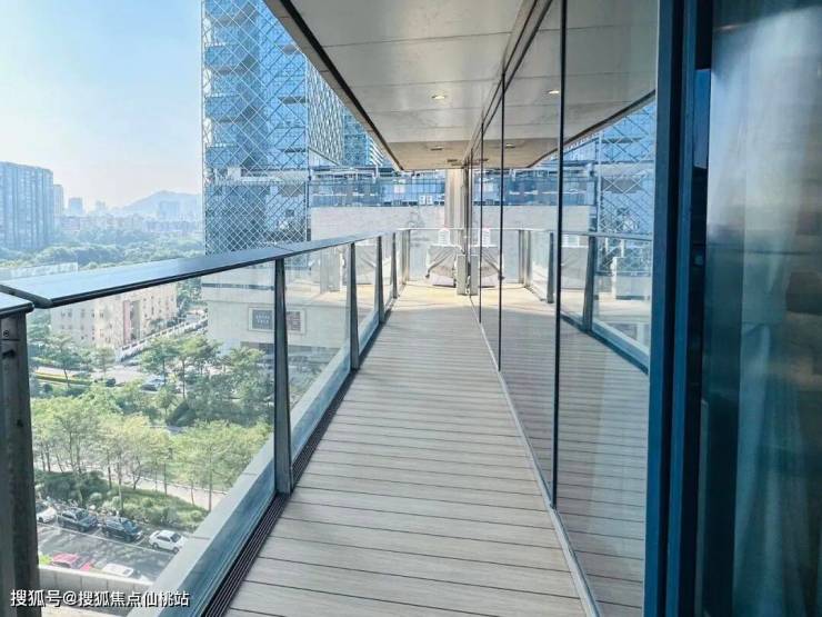 外立面采用2.4米宽幅全景无梁玻璃幕墙,透光率高达91.7%,实现360°无死角海天盛景,白天通透雅致,夜晚璀璨夺目。